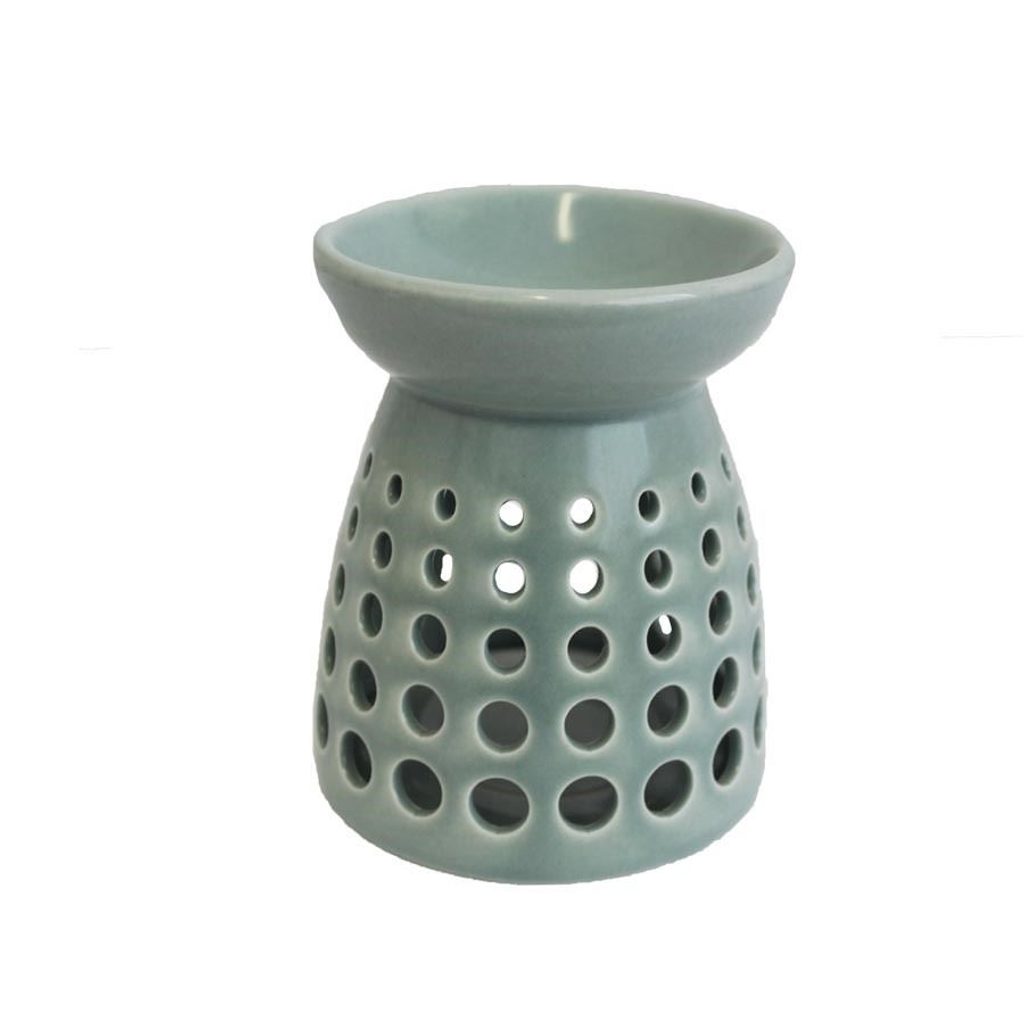 Krásná aromalampa. Aromalampa má průměr 10,7 cm, výšku 11,2 cm. Barva : zelená. Materiál : porcelán. Aromalampa je výborná pro odpařování éterických olejů rozpuštěných ve vodě či voskových aromakapslí. Aromalampa poslouží nejenom jako difuzér pro osvěžení vzduchu, ale také je pěknou vkusnou dekorací do každého interiéru.