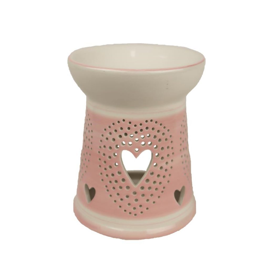 Keramická aromalampa. Aromalampa je výborná pro odpařování éterických olejů rozpuštěných ve vodě či voskových aromakapslí. Aromalampa poslouží nejenom jako difuzér pro osvěžení vzduchu, ale také je pěknou vkusnou dekorací do každého interiéru. Rozměry : průměr 12 cm, výška 14,8 cm. Barva : kombinace bílá s růžovou. Materiál : keramika.