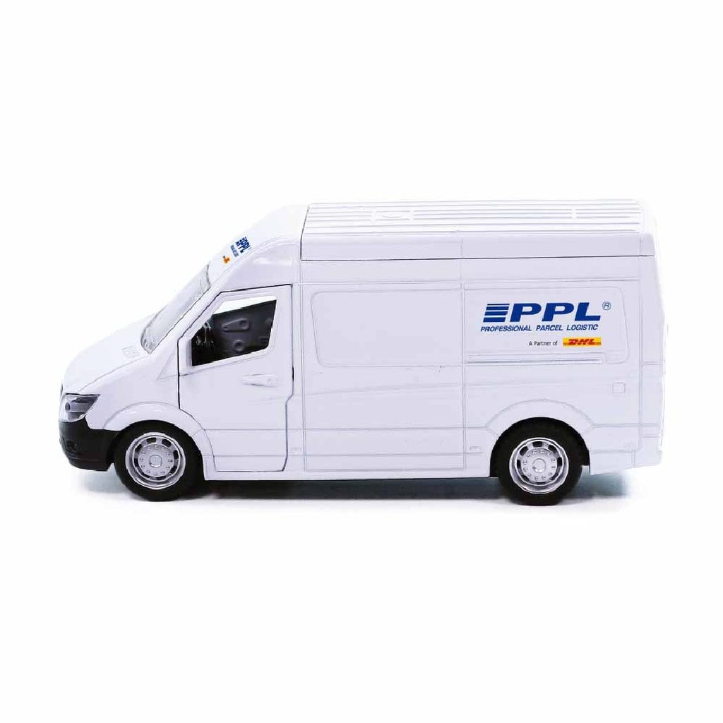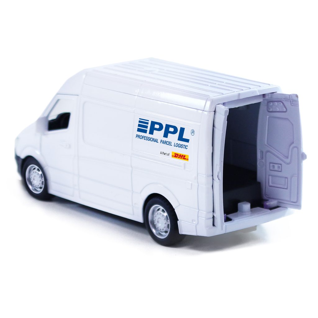 Rozšiř si svůj vozový park a pořiď si tuhle originální kovovou dodávku s logem přepravní společnosti PPL. Auto má otevírací přední i zadní dveře. Jezdí na zpětný chod a jeho délka je 14,5 cm.