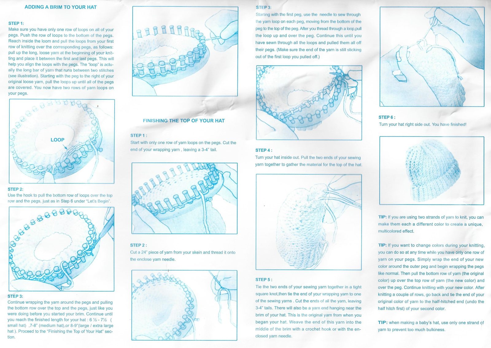 Tip: Pokud chcete měnit barvu příze během pletení, můžete tak učinit ve chvíli, kdy máte pouze jednu řadu smyček na kolíčcích. Jednoduše omotejte další barvu příze na kolíček , který je na hraně rámečku a omotávejte kolíčky, jako obvykle s tím, že spodní smyčky původní barvy poté přetáhnete přes kolíček a smyčky nové barvy. V případě, že se chcete vrátit k původní barvě, navažte ji na konec příze, kterou právě používáte.