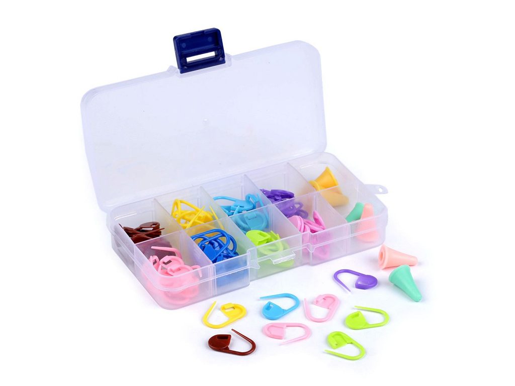 Sada pomůcek na pletení či háčkování je výborným pomocníkem pro začátečníky i pokročilé. Všechny pomůcky jsou uloženy v praktickém plastovém boxu.