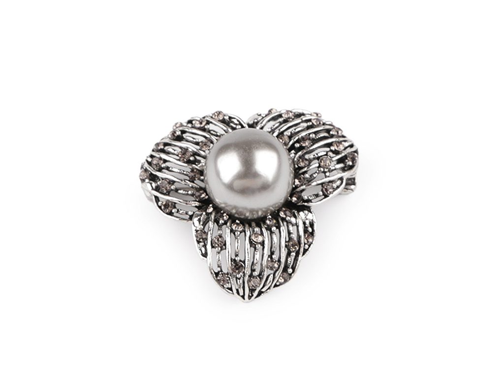 Brož saténový květ s broušenými kamínky Ø7 cm