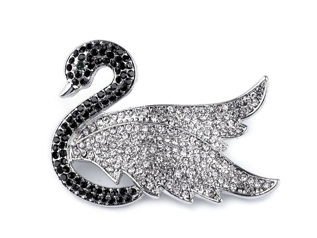 Brož s broušenými kamínky labuť