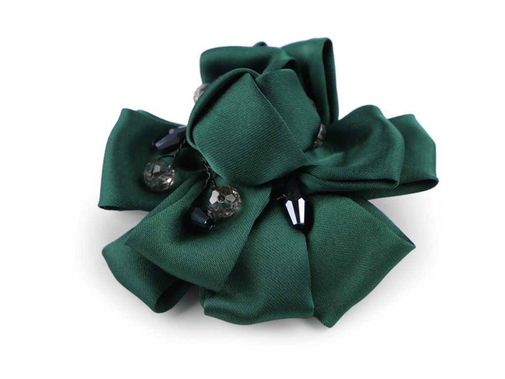 Brož saténový květ s broušenými kamínky Ø7 cm