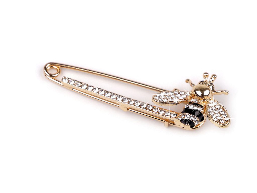 Brož s broušenými kamínky na spínacím špendlíku včela