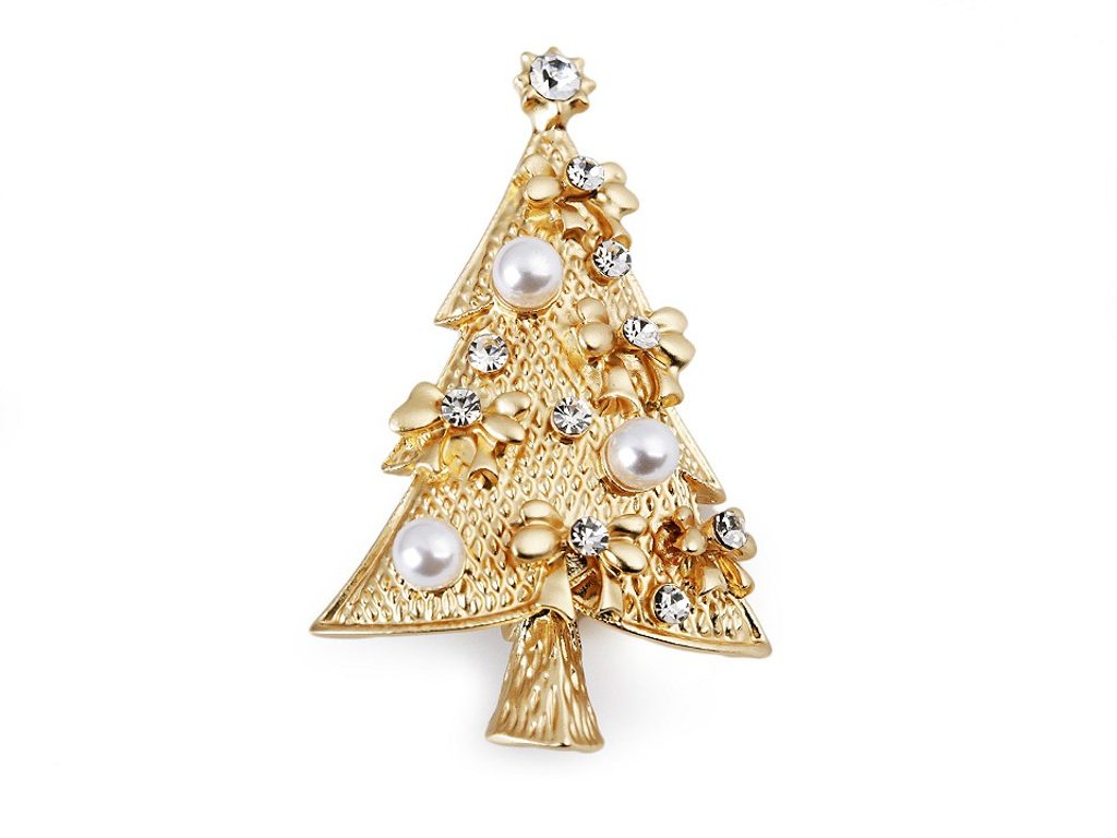 Brož s broušenými kamínky vánoční stromeček
