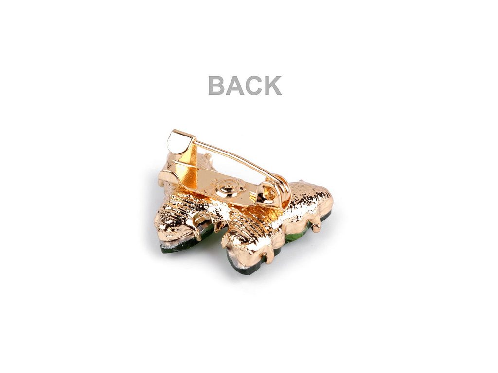 Mini brož motýl je osázená broušenými kameny, díky kterým se potavě leskne. Její miniaturní provedení je ideální pro všechny, kteří si potrpí na jemné detaily a eleganci. Můžete ji využít na běžné nošení i na společenské události. Skvěle ozdobí oděvy, kabelky, klobouky a čepice, hodí se k ozdobnému sepnutí šátku. Na zadní straně má brožový špendlík.
