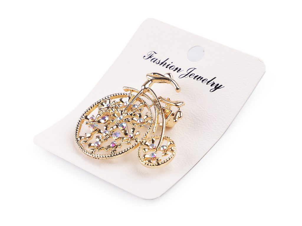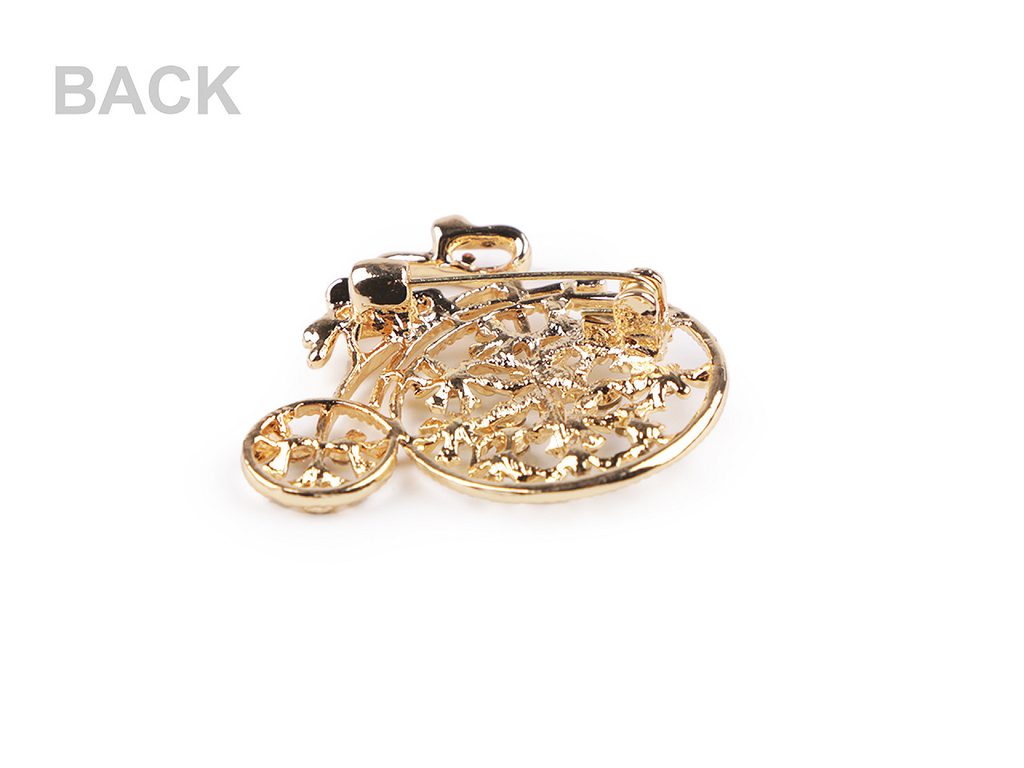 Originální brož bicyklu zaujme všechny romantické duše. Tato nostalgická brož je osázená broušenými kamínky s AB efektem, které se poutavě třpytí. Oceníte ji na nošení ve všedních dnech i na společenské události - návštěvy divadel, oslavy apod.