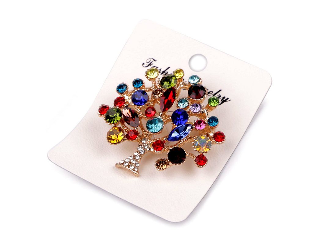 Elegantní kovová brož strom života je velice výrazná, upoutá na první pohled třpytivými broušenými kamínky. Doladí vaše šaty, sako, kostýmek, halenku, klobouk i tašku. Můžete ji využít jako spínací sponu na šálu nebo šátek.