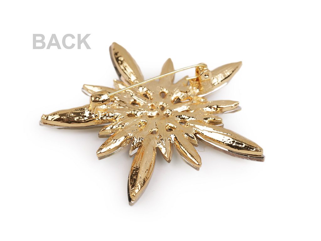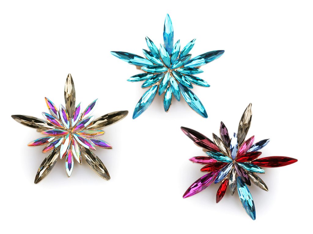 Třpytivá brož vločky je naprosto úchvatná. Díky broušeným kamínkům doslova oslňuje už z dálky. Navozuje dojem, jako by byla poskládaná z ledových sklíček. Můžete ji nosit na oděvech, kloboucích, taškách či s ní můžete sepnout šátek. Na zadní straně má brožový špendlík.