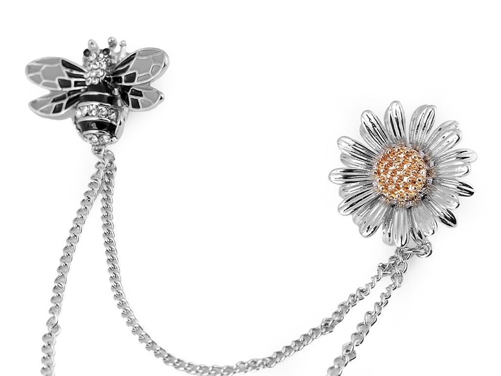 Brož / spona dragoun s broušenými kamínky jelen, křídlo, včela, květ
