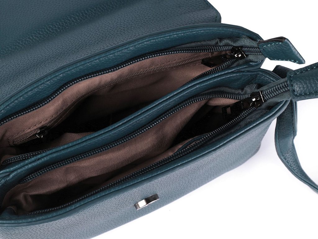 Kabelka je prostorná, zavírá se na klopu s magnetickým zapínáním. Pod klopou má dvě velké oddělené kapsy, které se zapínají na zip. Uvnitř najdete ještě kapsu na mobil, klíče apod. a jednou kapsu na zip na uschování drobných cenností. Na zadní straně kabelky je ještě malá kapsička na zip. Součástí kabelky je nastavitelný popruh na karabiny. Crossbody kabelku můžete nosit přes rameno nebo do kříže.