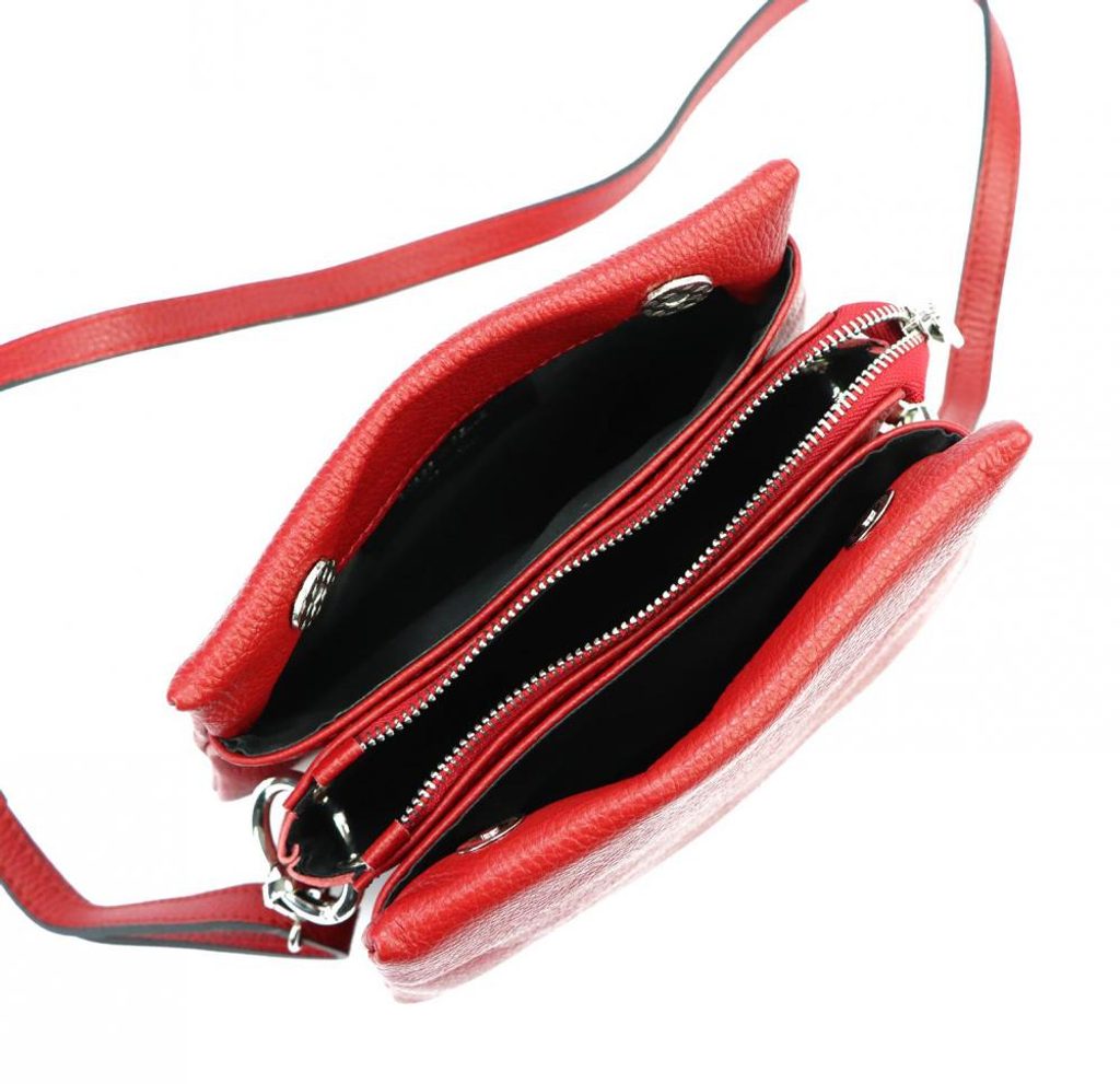 MiaMore Kožená crossbody dámská kabelka se třemi oddíly červená naleznete v kategorii: Crossbody kabelky