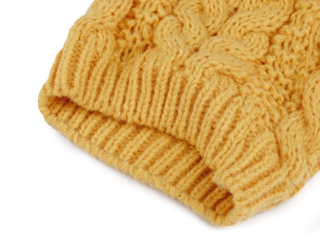Pletená čepice s velkou bambulí má poutavou strukturu s copánkovým vzorem. Bude vás příjemně hřát, pletenina je měkká a příjemná na dotek. Dolní řádkovaný okraj dobře drží, je zpevněný pruženkou. Bambule věrně imituje pravou kožešinu.