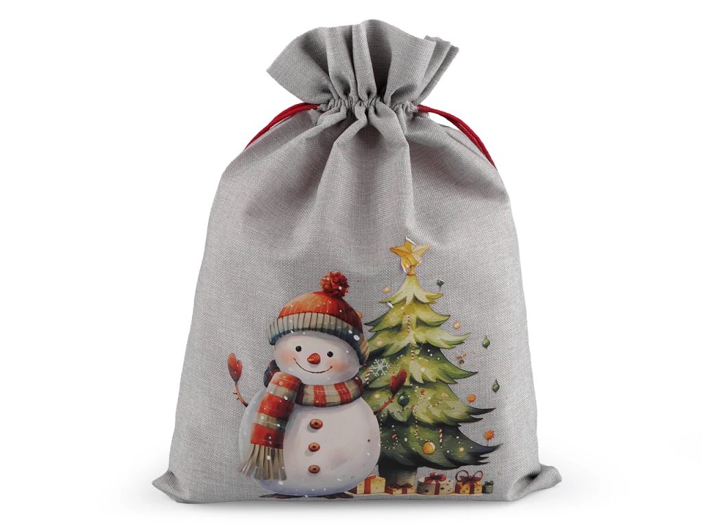 Vánoční dárkový pytlík sněhulák 30x40 cm