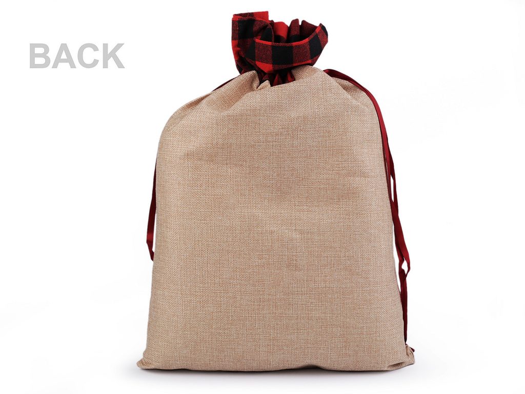 Vánoční pytel si získá srdce všech dětí. Je vyrobený z imitace juty, na přední straně jej zdobí aplikace postavy se spoustou zajímavých detailů. Nahoře je ozdobený károvaným lemem. Hodí se nejen na zabalení dárků, ale i jako poutavá dekorace na Vánoce. Pohodlně se uzavírá pomocí saténových stahovacích šňůrek.