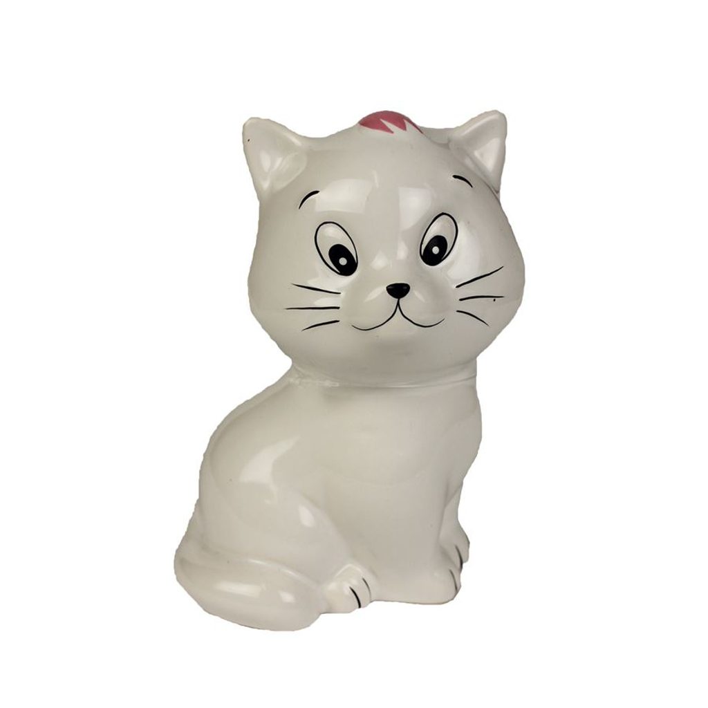 Krásná pokladnička ve tvaru kočky. Rozměry : 9,8 x 8,5 cm, výška 13,9 cm. Barva : bílá. Materiál : keramika.