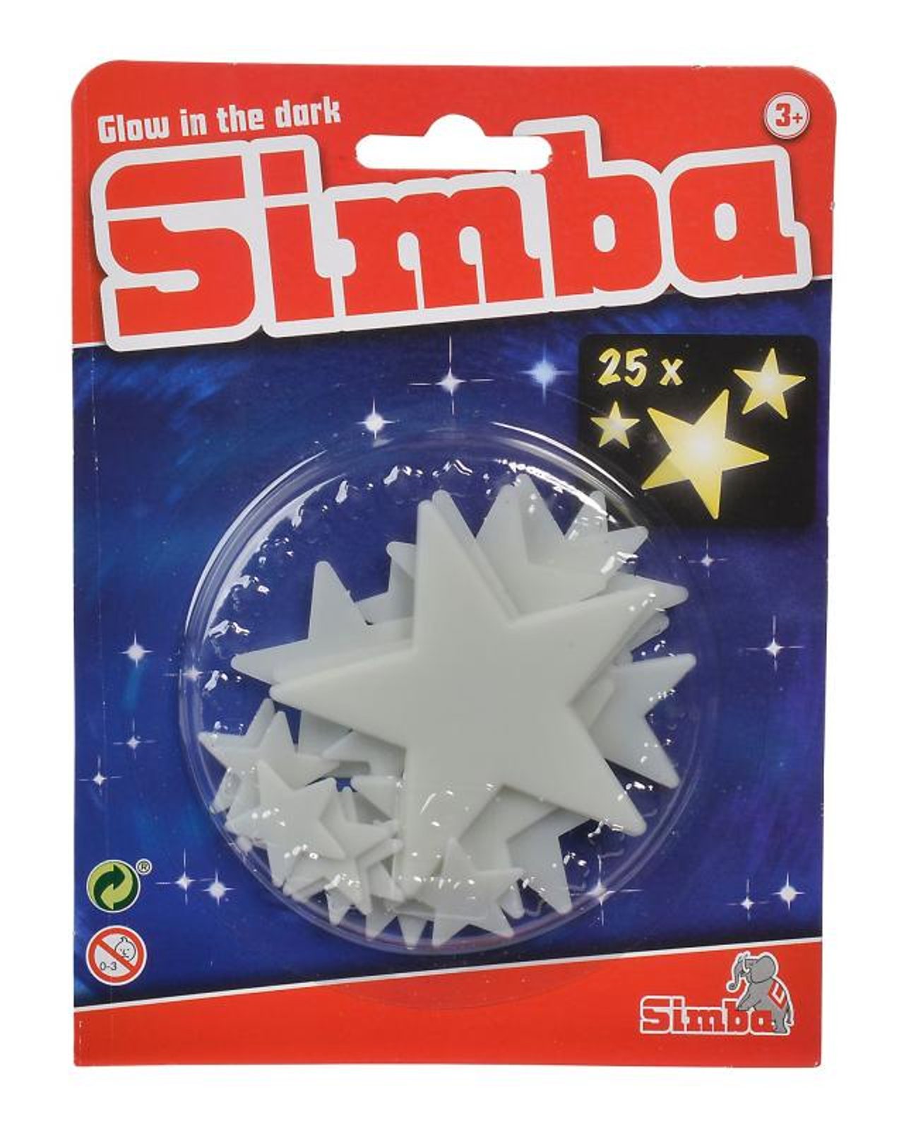 Hvězdičky různých velikostí, které po nasvícení ve tmě svítí. Možno nalepit na stěnu, strop či nábytek. Sada obsahuje 25 dílů