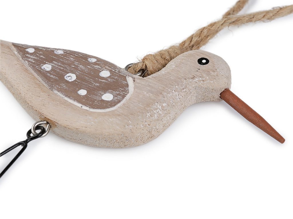 Dřevěný čáp je působivým dekoračním prvkem, který můžete díky poutku kamkoli pověsit, třeba na věnce nebo větvičky ve váze.