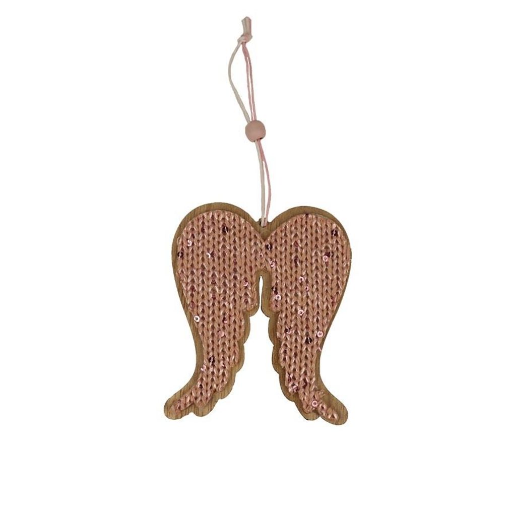Dekorační křídla k zavěšení. Rozměry : 8,5 x 0,5 cm, výška 10 cm. Barva : kombinace růžová s přírodní. Materiál na bázi dřeva, textil.