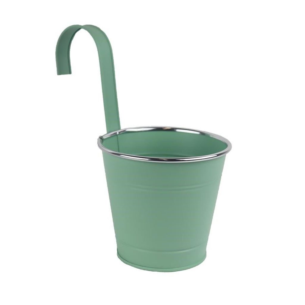 Květináč kovový k zavěšení. Rozměry : průměr 14 cm, výška 12,6 cm, celková výška suchem 24 cm. Barva : zelená. Materiál : kov.