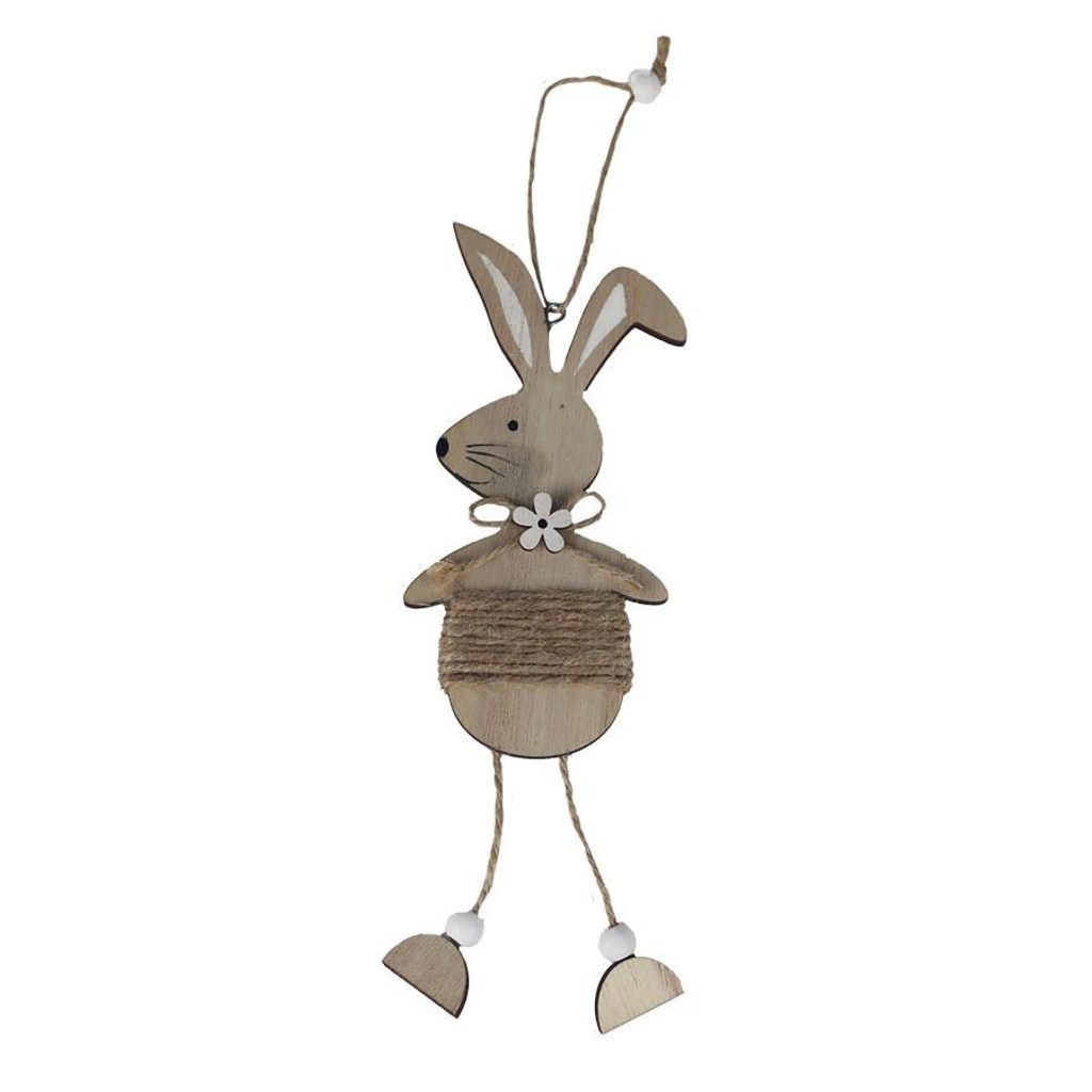 Dekorační zajíc k zavěšení. Rozměry : 8 × 0,5 cm, výška 15.5 cm. Barva : přírodní. Materiál na bázi dřeva.