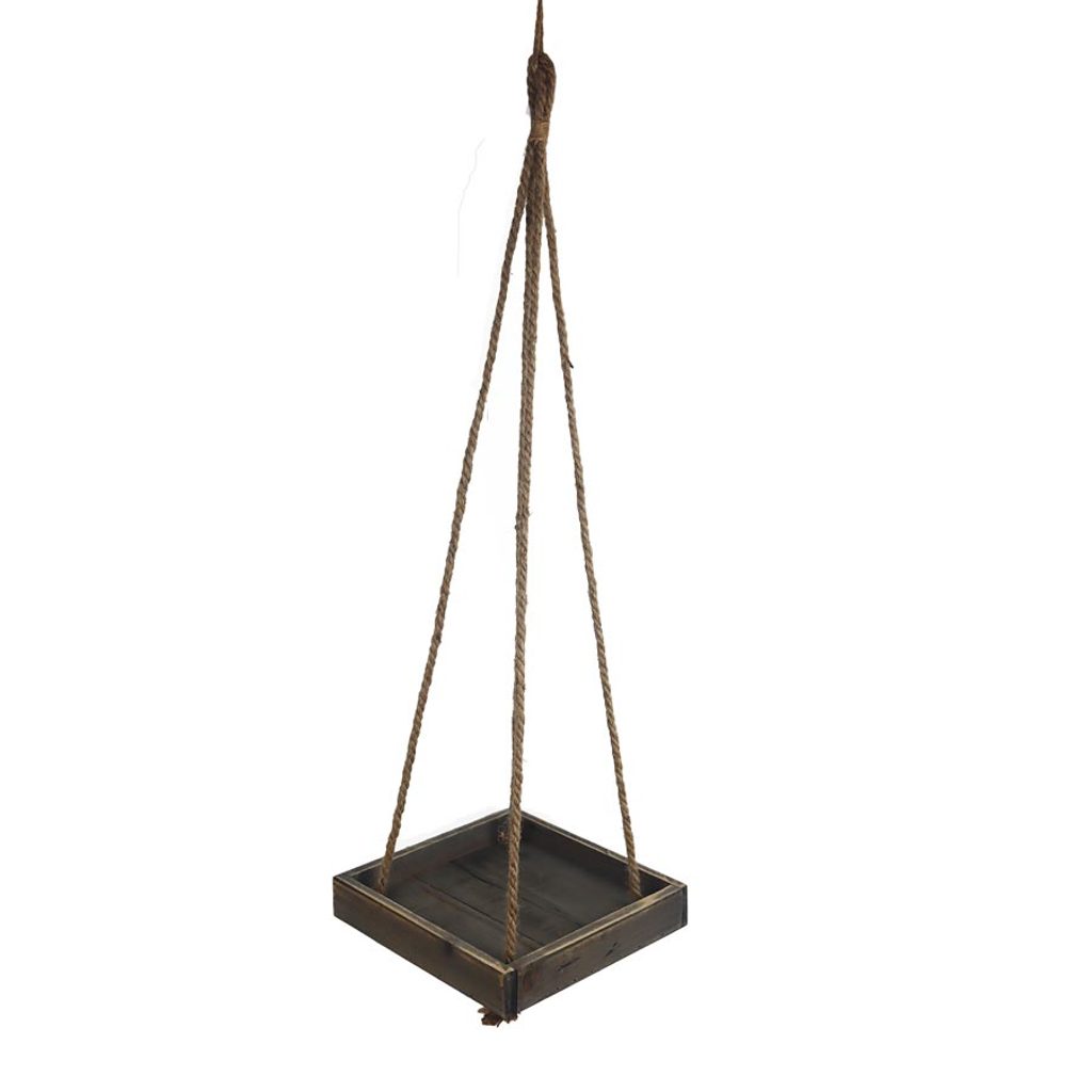 Závěs na květiny. Rozměry : 23 x 23 cm, výška 4 cm, celková délka se závěsem 75 cm. Barva : šedá. Materiál na bázi dřeva, provázek.