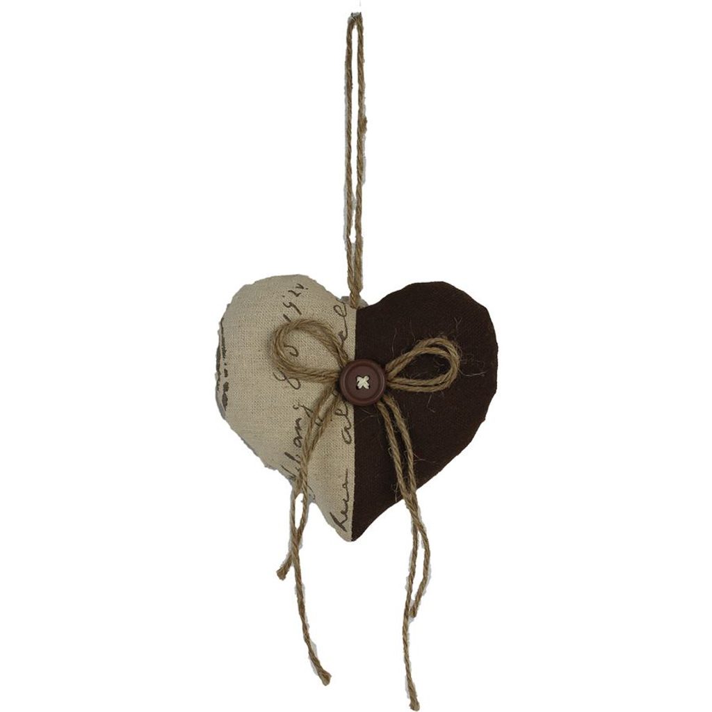 Krásná vánoční dekorace k zavěšení ve tvaru srdíčka, hnědá barva. Srdce má rozměry 13 x 13 cm, tloušťku 3,5 cm. Materiál : látka.