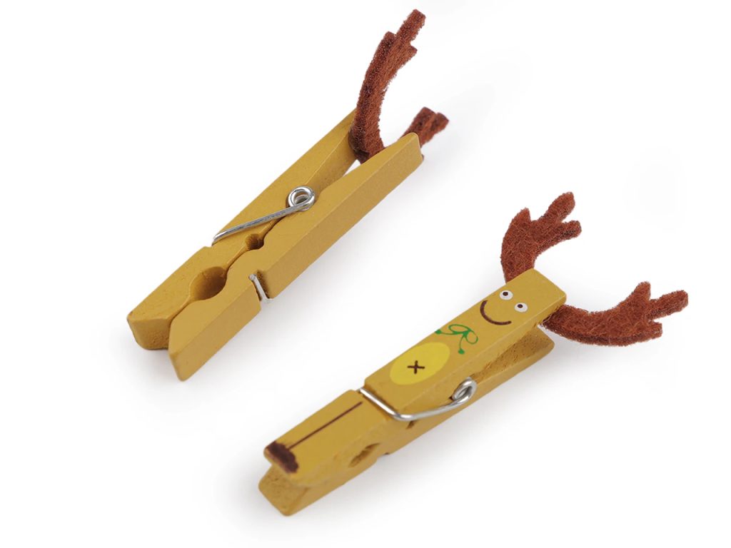Roztomilé dřevěné kolíčky stylově ozdobí vánoční dárky, pytlíky, tašky nebo květináče a květinové vazby. Mají působivě zpracované detaily.