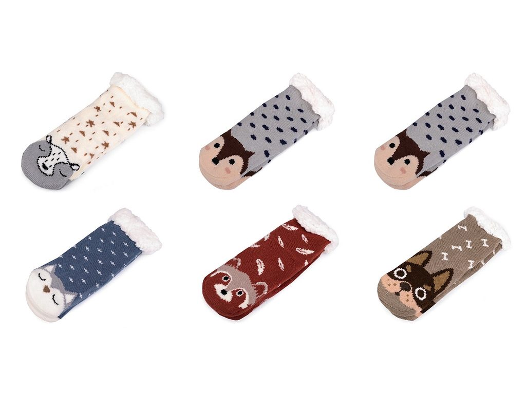 Maxi teplé ponožky, s motivem zvířátka na špičce, nedají zimě šanci. Jsou heboučké, z vrchní strany pletené, uvnitř je teplá chlupatá podšívka, která věrně imituje vlnu.