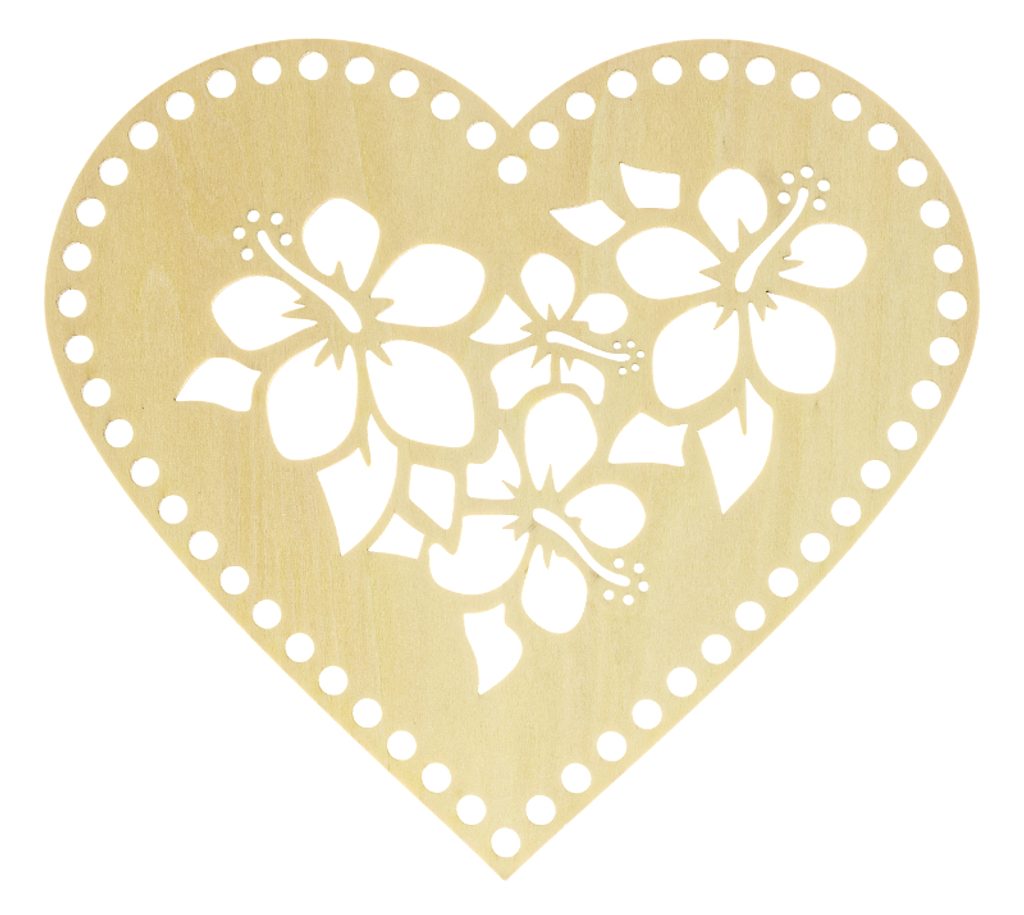Dno - víko překližkové Natur srdce květinové 20x18 cm / otvory 6 mm naleznete v kategorii: Dna na pletení