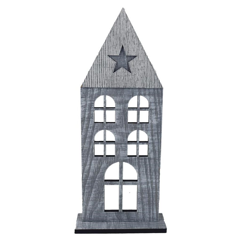 Dekorační domeček. Rozměry : 13.5 × 5,5 cm, výška 32 cm. Barva : šedá. Materiál na bázi dřeva.