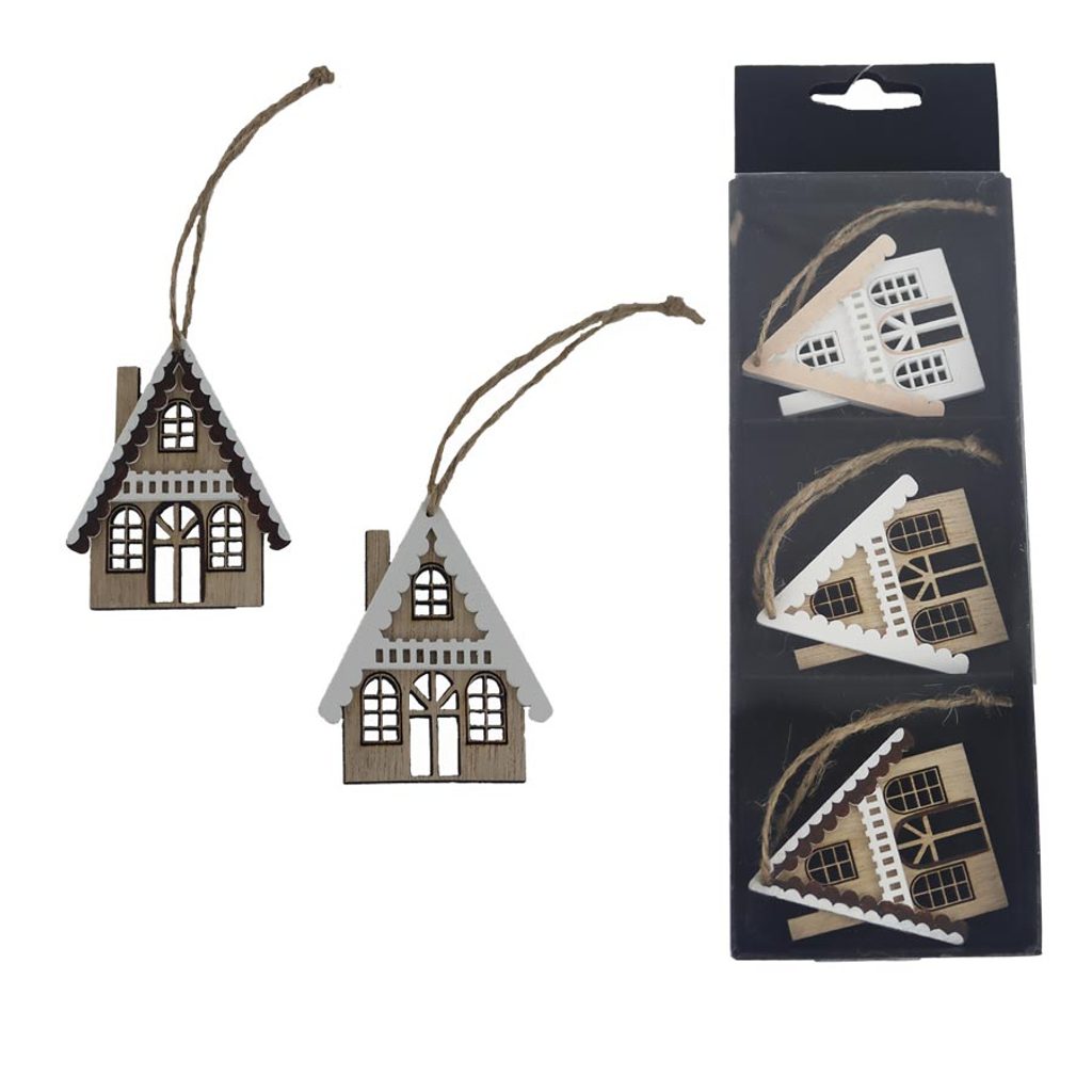 Domeček k zavěšení, 3 ks D7522 - 6 cm
