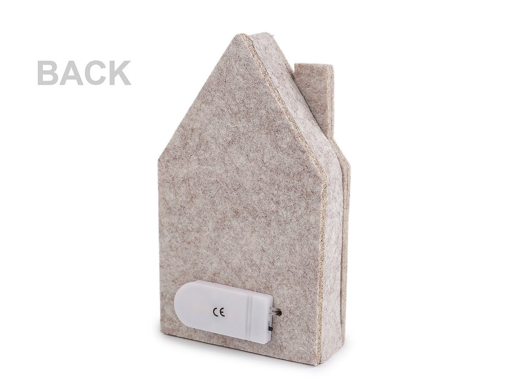 Svítící domeček je vyrobený z kombinace dřeva a pevného filcu. Svítí příjemným teplým světlem, které vypadá jako hvězdička. Dodá hřejivou a poklidnou atmosféru do každého interiéru.
