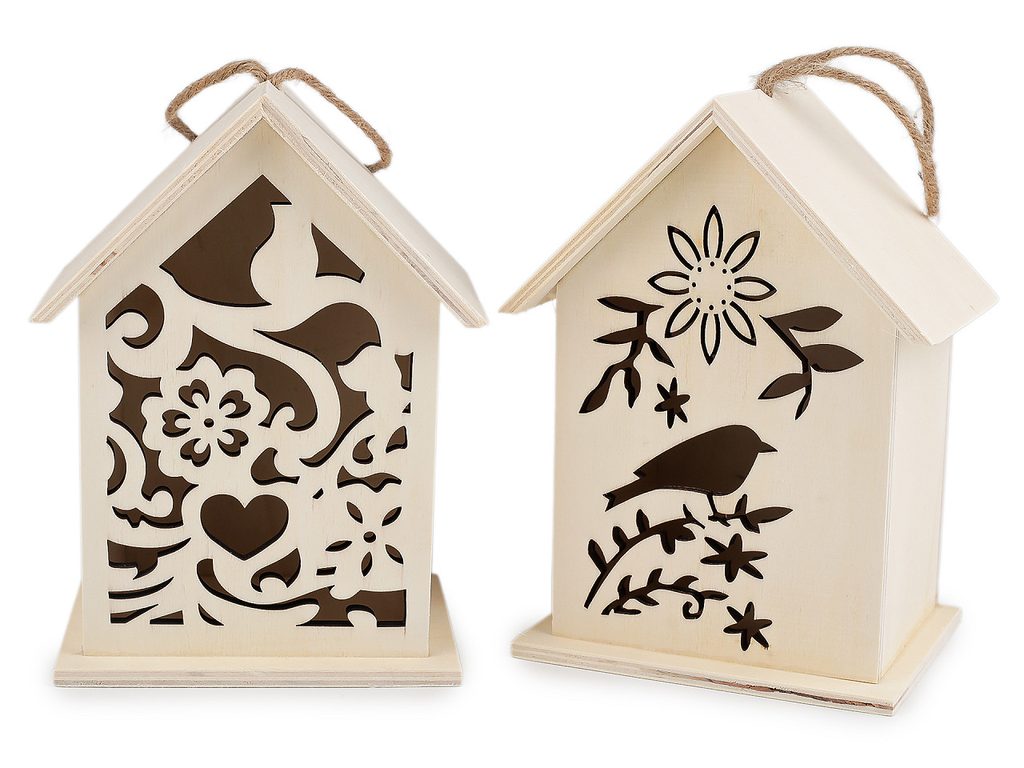Dřevěný domeček / budka je ideálním doplňkem pro kreativní duše, které si chtějí vytvořit něco jedinečného. Ozdobí vaši terasu, balkón, kuchyň apod. Díky poutku ho kamkoli pověsíte. Dá se domalovat akrylovými či temperovými barvami, popisovači, glitrovými lepidly, barvami ve spreji aj.