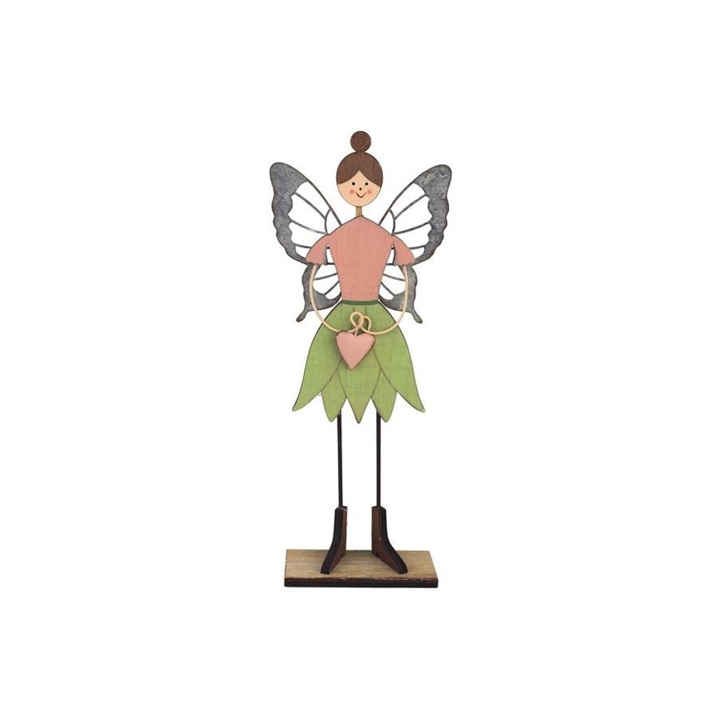 Dekorační víla. Rozměry : 8,5 x 4 cm, výška 22,5 cm. Barva : kombinace růžová, zelená, šedá, hnědá. Materiál : kov.