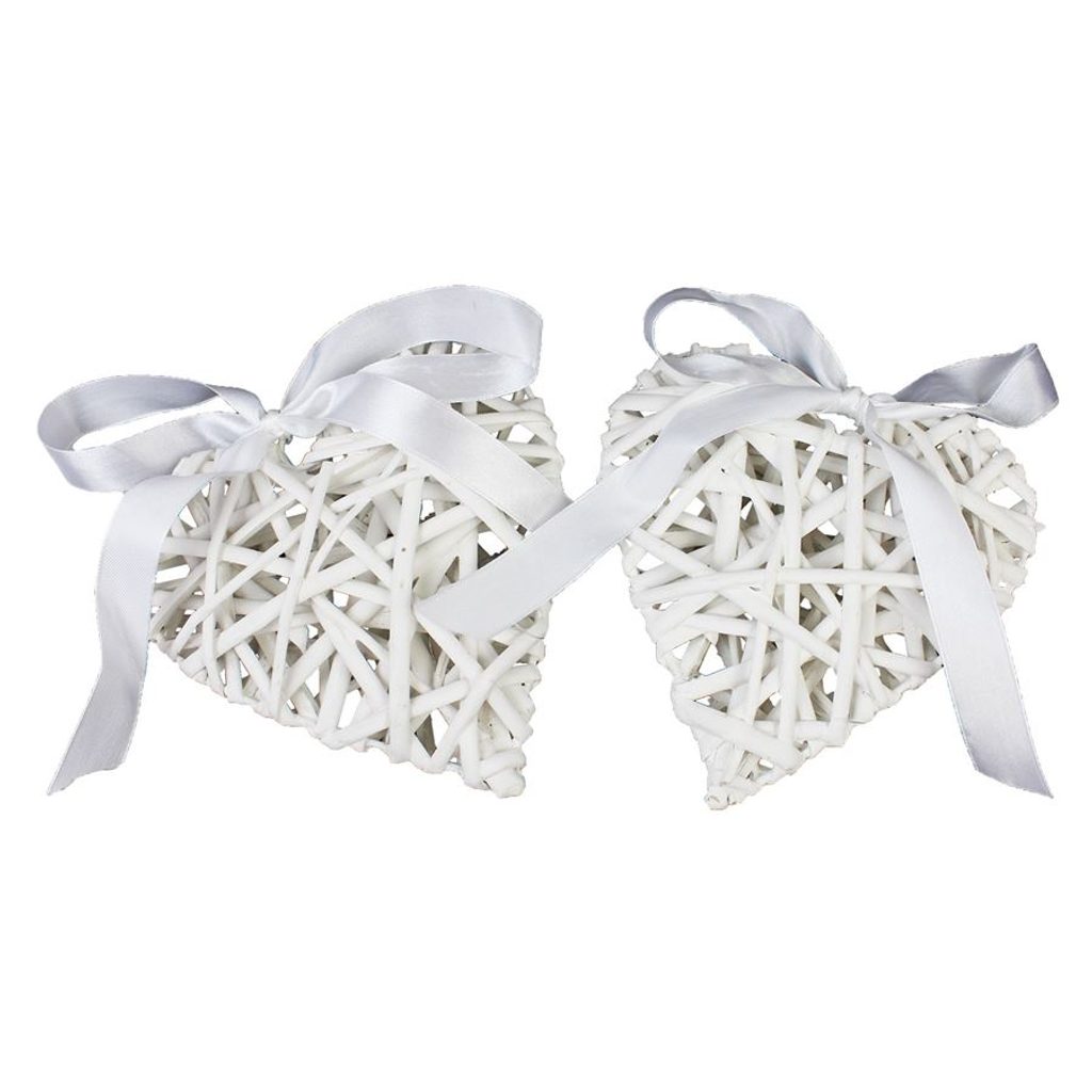 Proutěné srdce bílé 10cm sada 2ks