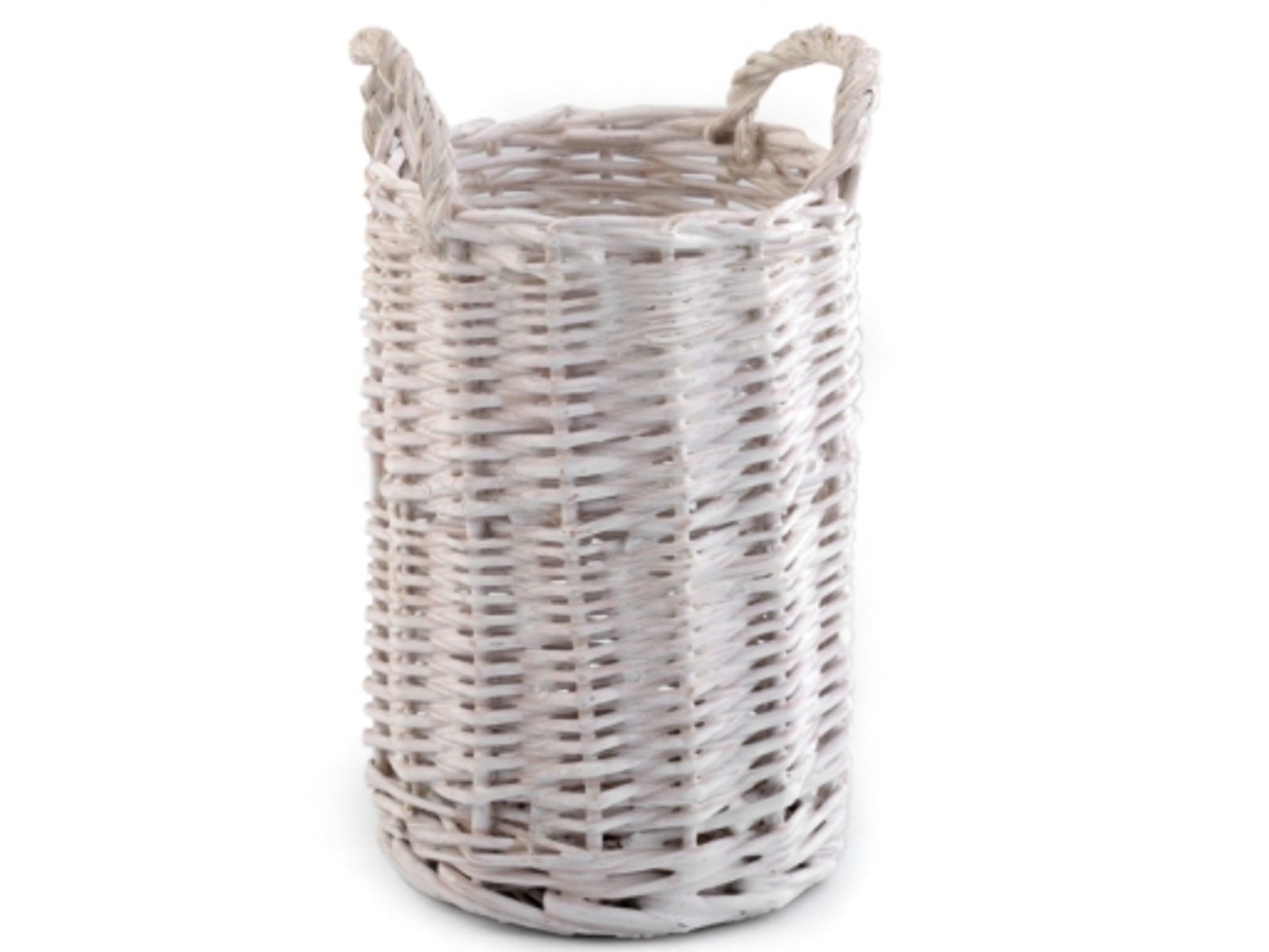 Proutěný košík ve stylu vintage využijete jako příborník nebo vázu na umělé či sušené květy. V horní části má dvě ucha na pohodlné přenášení.