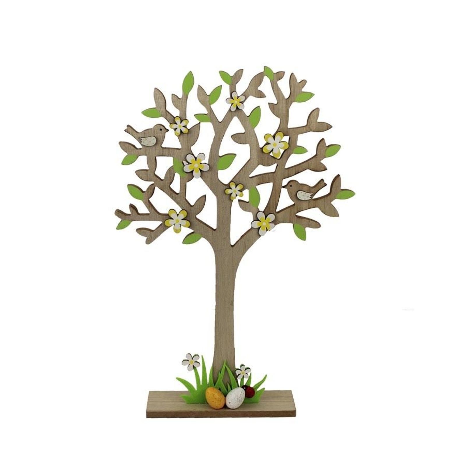 Dekorační strom. Rozměry : 27 x 5 cm, výška 40,5 cm. Barva : kombinace přírodní, zelená. Materiál na bázi dřeva.