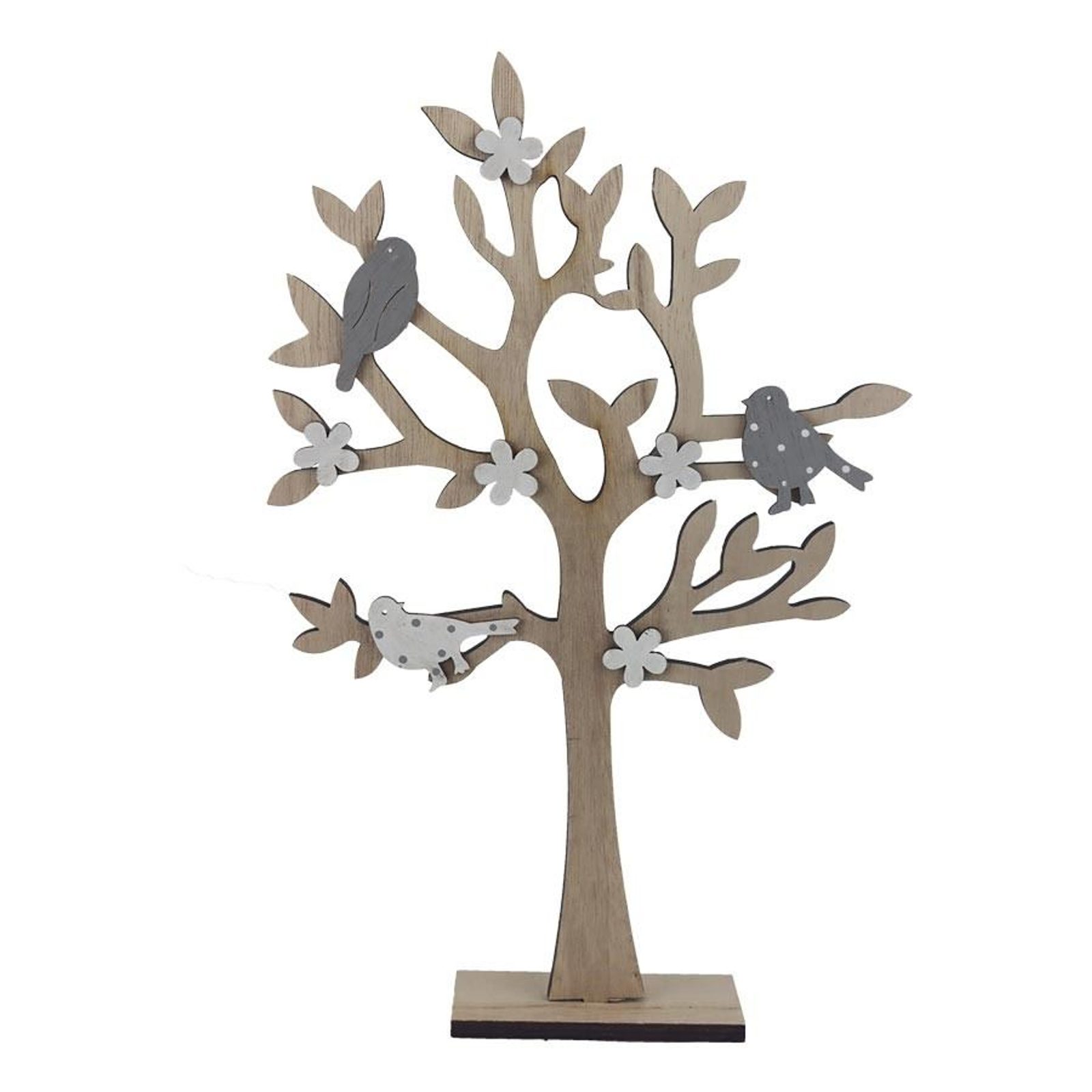 Dekorační strom. Rozměry : 23.5 × 4.5 cm, výška 36 cm. Barva : kombinace přírodní s šedou, bílou. Materiál na bázi dřeva.