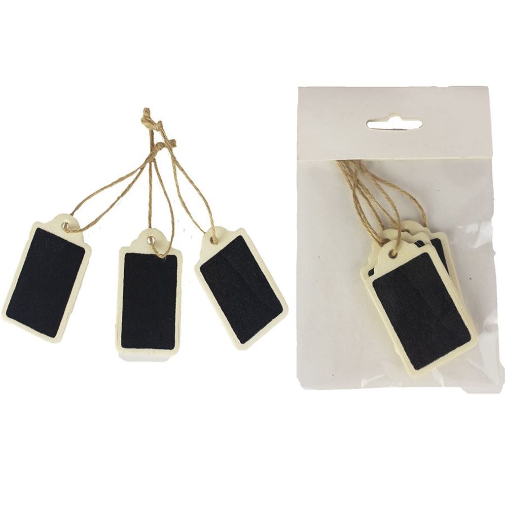 Sada visaček. Sada obsahuje 3 visačky. Visačky mají šířku 4 cm, tloušťku 0,2 cm, výšku 6,5 cm. Barva : kombinace černá s bílou. Materiál na bázi dřeva.