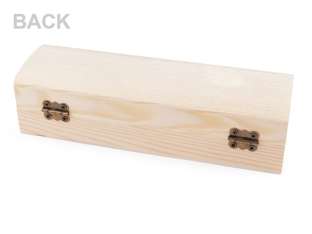 Dřevěnou krabičku využijete ke schování svých pokladů, navíc je i stylovým bytovým doplňkem. Má odklápěcí víko s kovovým zapínáním a panty. Víko není rovné, ale jemně vypouklé, jako mají truhly. Krabičku můžete dozdobit dle vlastní fantazie - pomalovat, použít techniku decoupage apod. Dáváte-li přednost přírodnímu nebo vintage stylu, můžete na krabičku nalepit přírodní provázky a paličkovanou krajku.