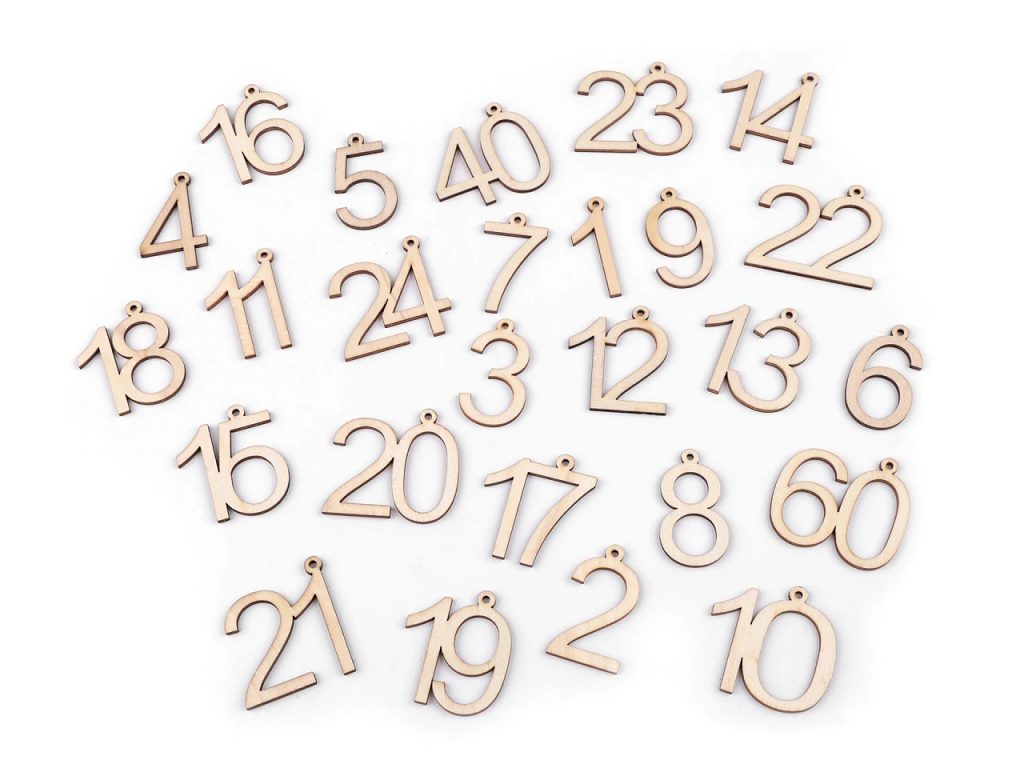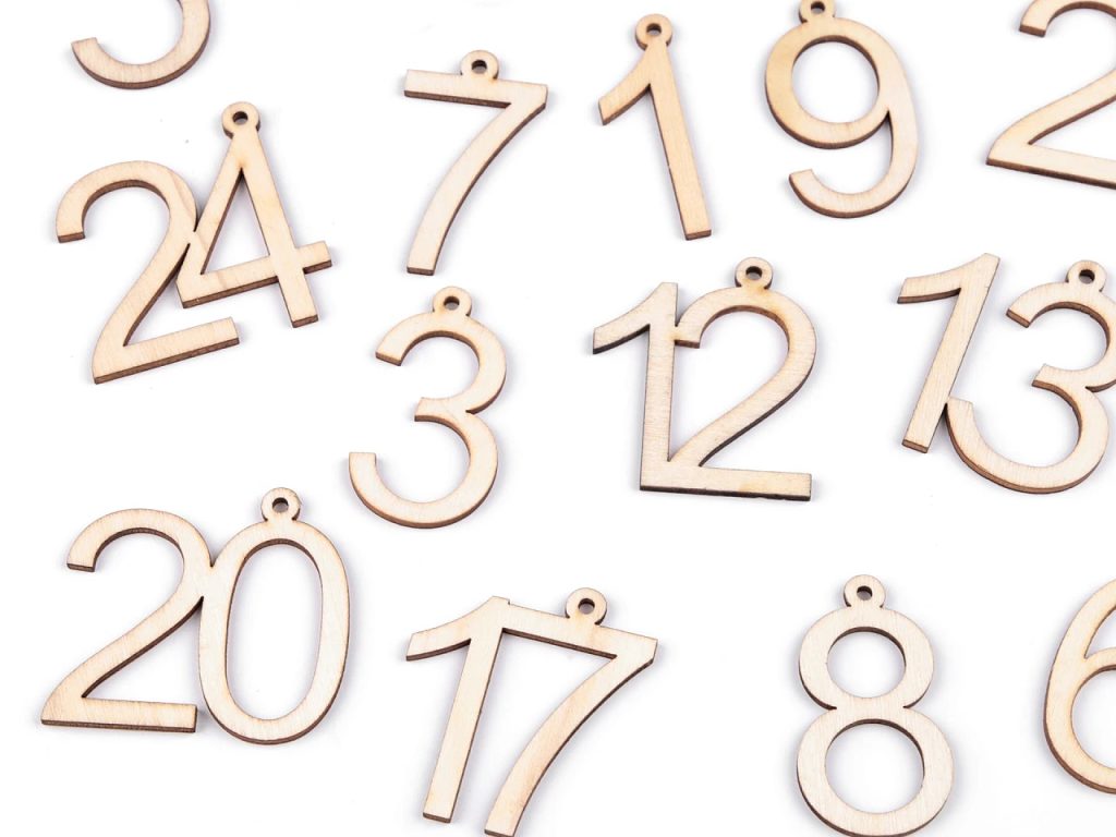 Dřevěná čísla se závěsem jsou hravou a kreativní dekorací. Jsou přesně vyřezaná laserem. Využijete je na aranžování, hodí se na ozdobení dárku pro oslavence, můžete je využít i na výrobu adventního kalendáře. Nahoře mají otvor na protažení šňůrky. Využijete je i na techniku scrapbooking, kde čísly můžete ozdobit přání, alba, rámečky apod.