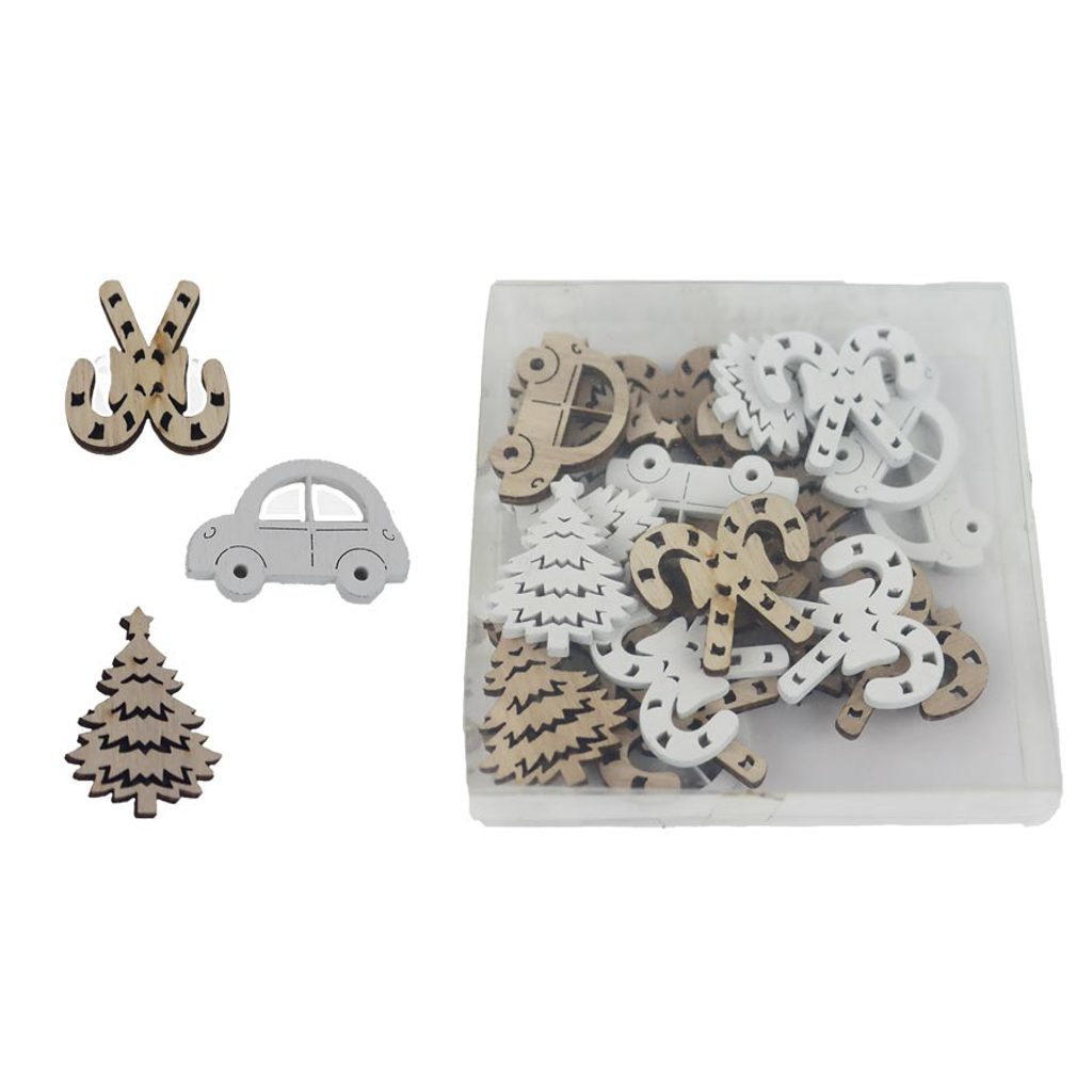 Vánoční přízdoby, 24 ks D6424 - 2,5 - 3,4 x 0,3 x 2,2 - 3,5 cm naleznete v kategorii: Dřevěné ozdoby