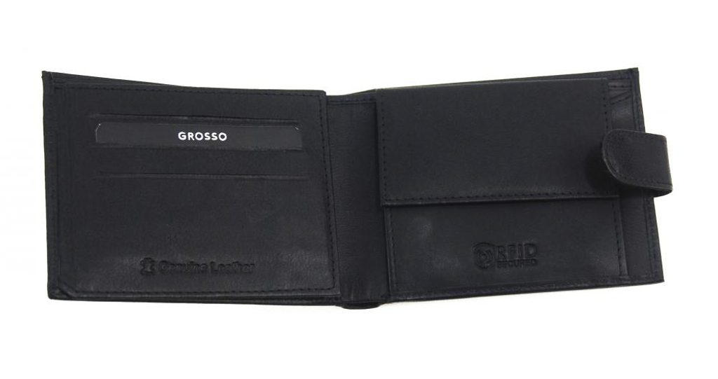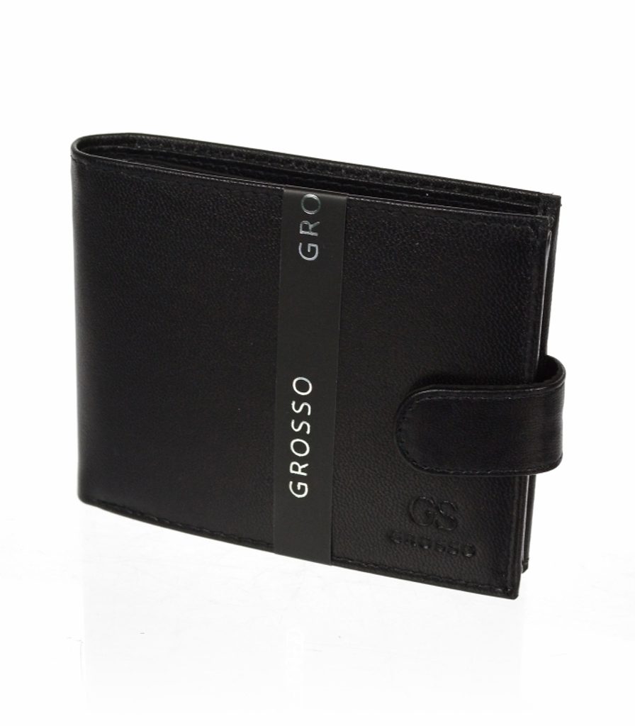GROSSO Kožená pánská peněženka černá RFID se zápinkou v krabičce