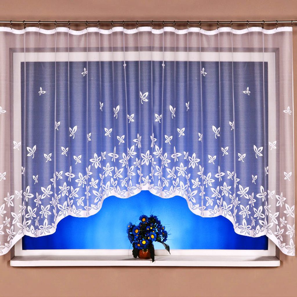 Kusová žakárová záclona s květinovým vzorem. Záclona Glorie je zakončena do oblouku. Obloukové záclony jsou velice oblíbené, jelikož nechají vyniknout parapet, který můžete využít na dekorace nebo květiny. Záclona má na vrchní části pevný okraj, který stačí pouze nažabkovat.