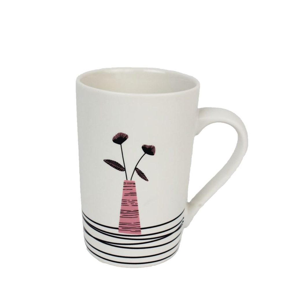 Hrnek porcelánový KVĚT 0,4 l šedá O0482-21 - dia 9,7 x 8,5 cm