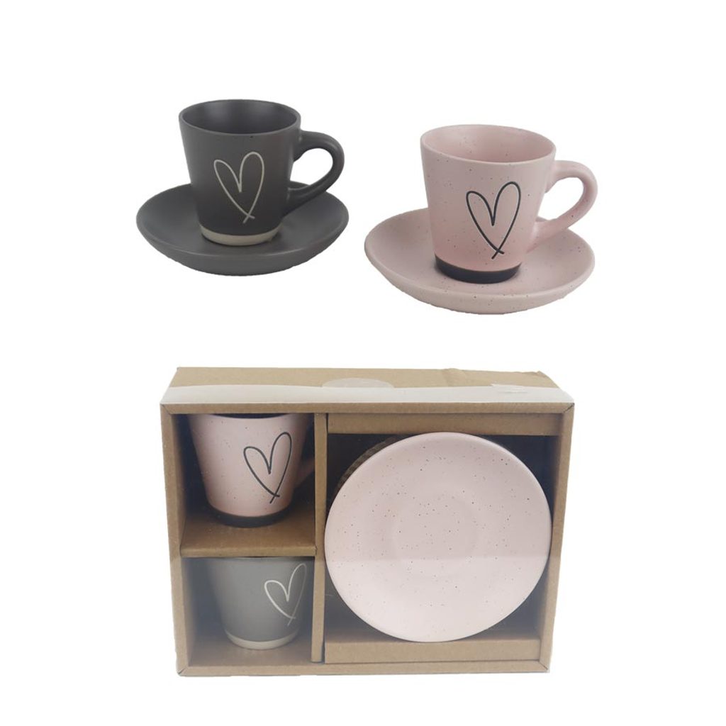 Hrnek s podšálkem HEART sada 6ks 3x bílá 3x černá 90 mlO0044