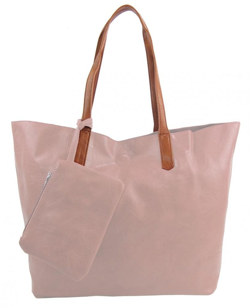 Velká růžová shopper dámská taška s crossbody uvnitř