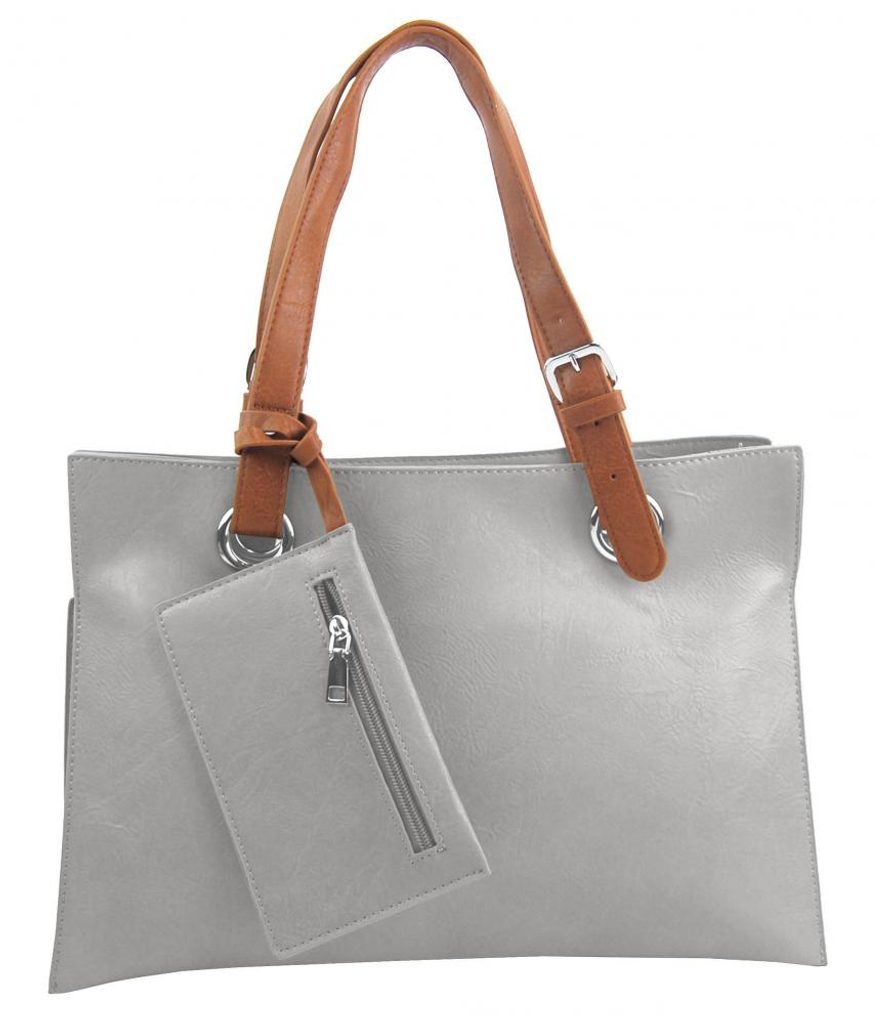 Velká světle šedá shopper dámská kabelka s crossbody uvnitř